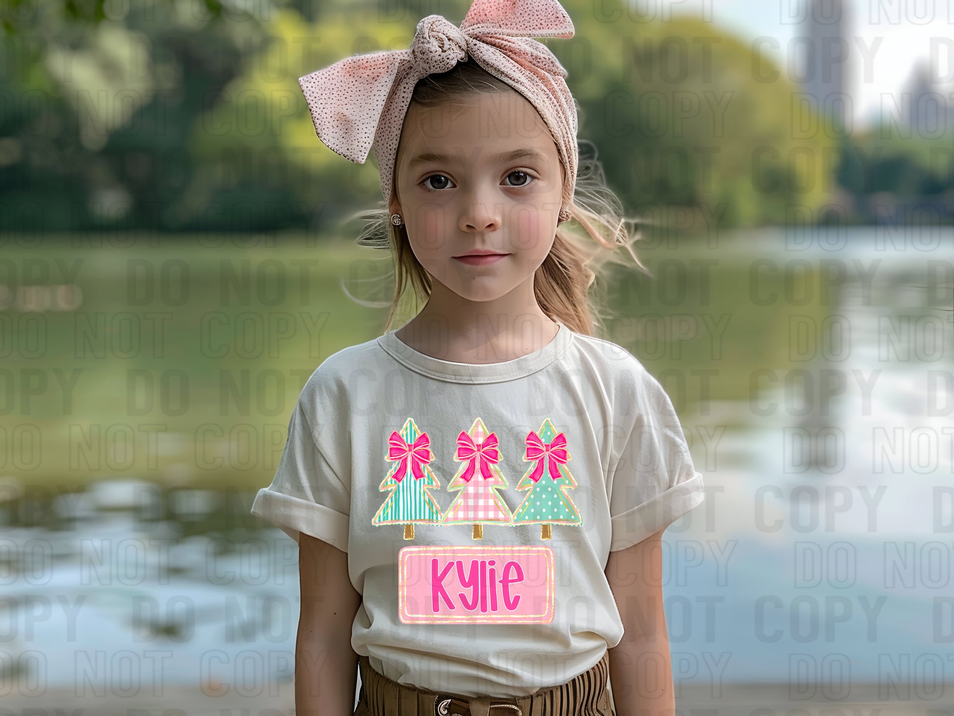 3 Trio Patterned Christmas Trees With Bows (Girl) With Name Plate Personalized DTF Transfer