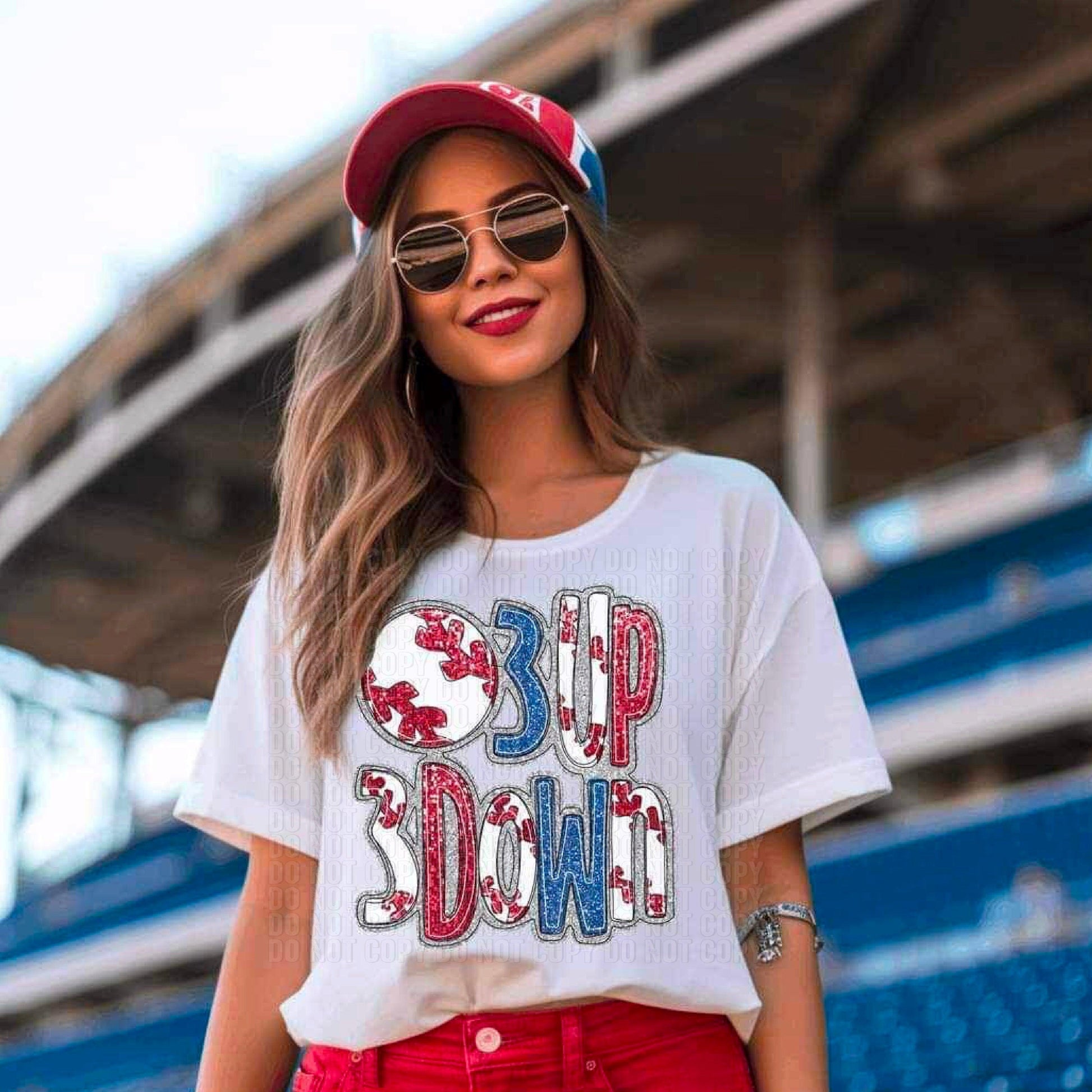 3 Up 3 Down Baseball Sequined Faux Silver Outline DTF Transfer