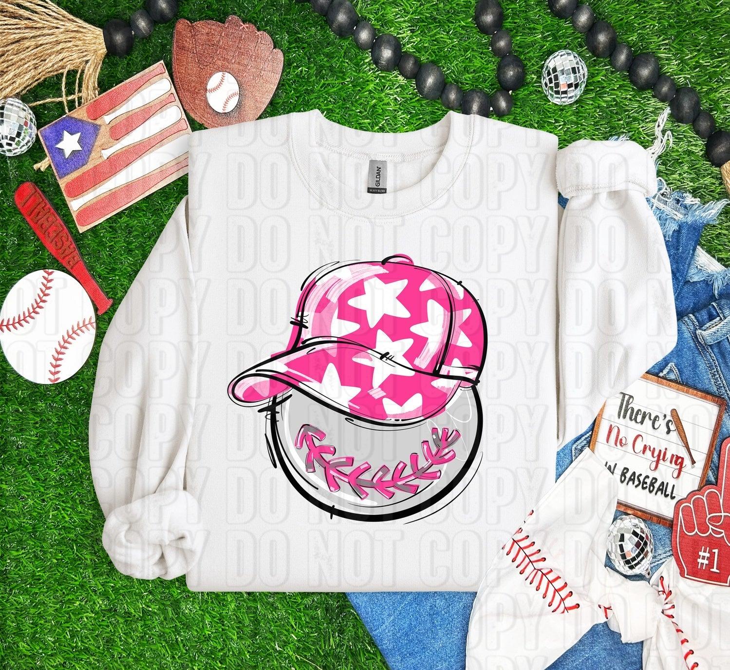 Baseball Happy Face Pink DTF Transfer
