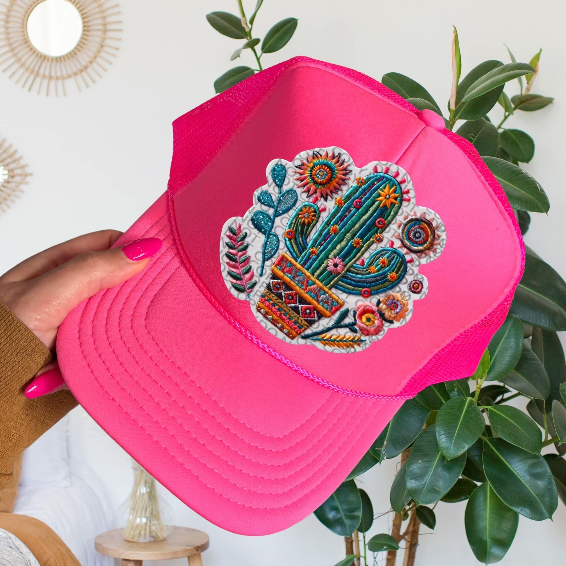 Cactus Floral Hat Patch DTF Transfer