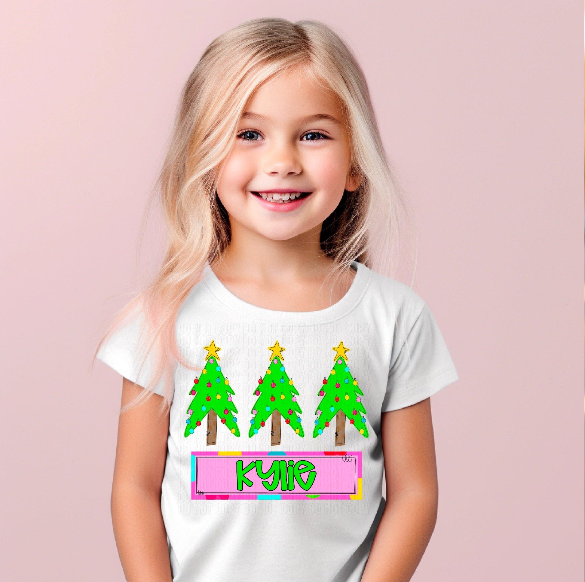 Christmas Tree Trio (Girl) With Name Plate Personalized DTF Transfer