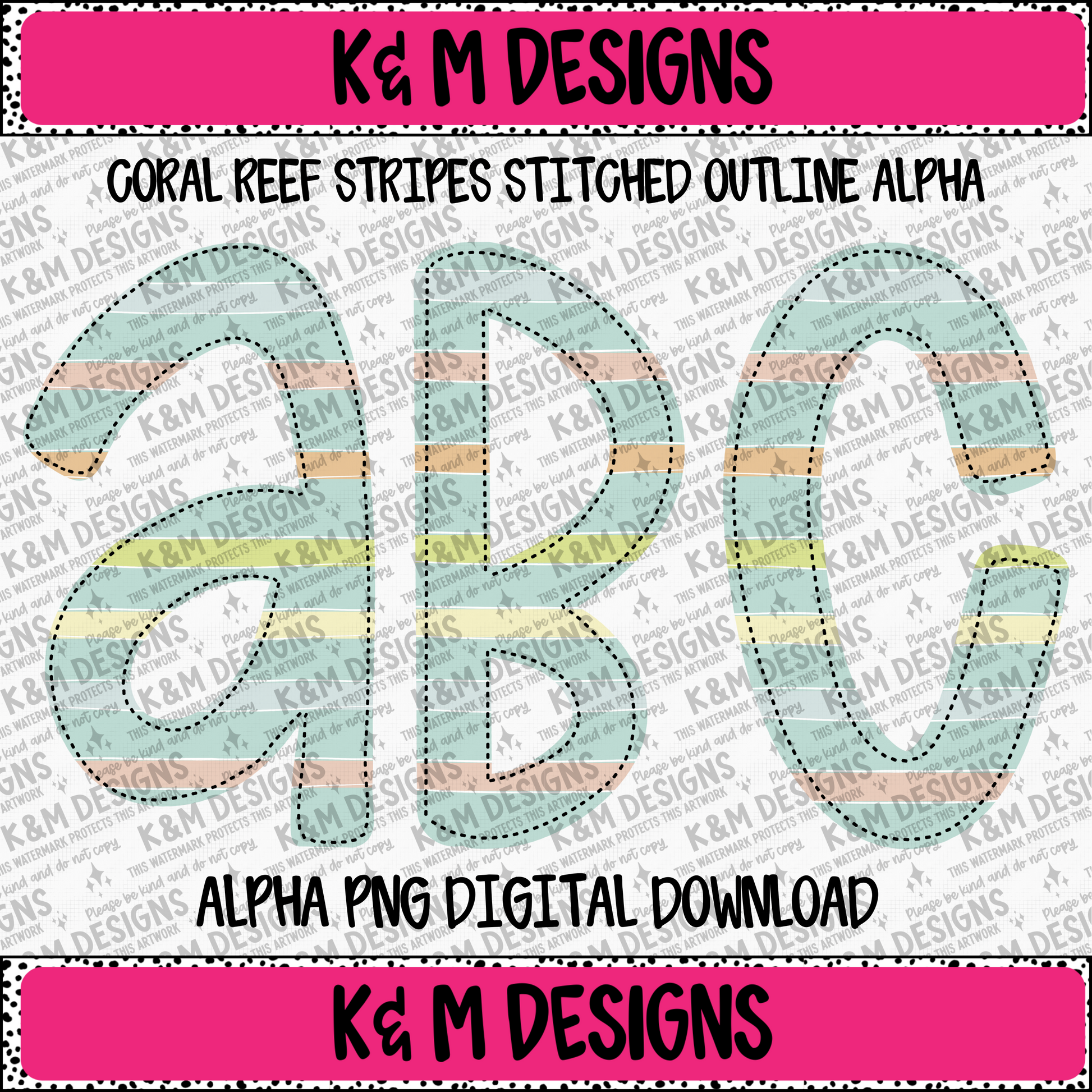 Coral Reef Stripes Stitched Outline Alpha PNG Set Digital Download