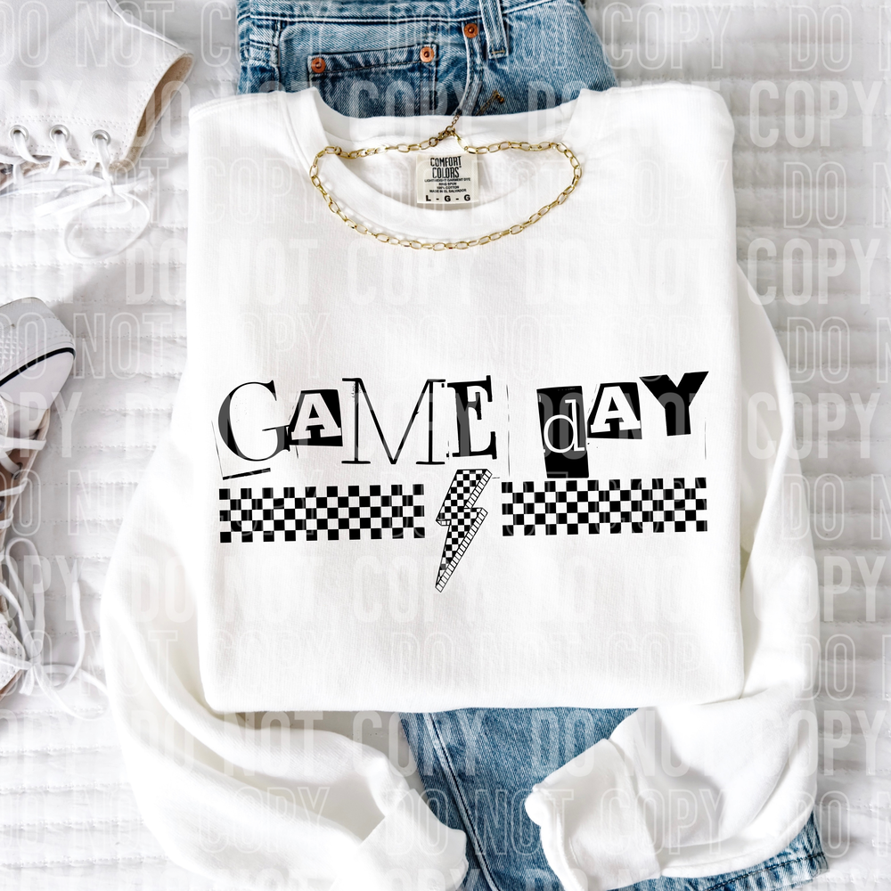 Game Day Checkered Bolt Word DTF Transfer