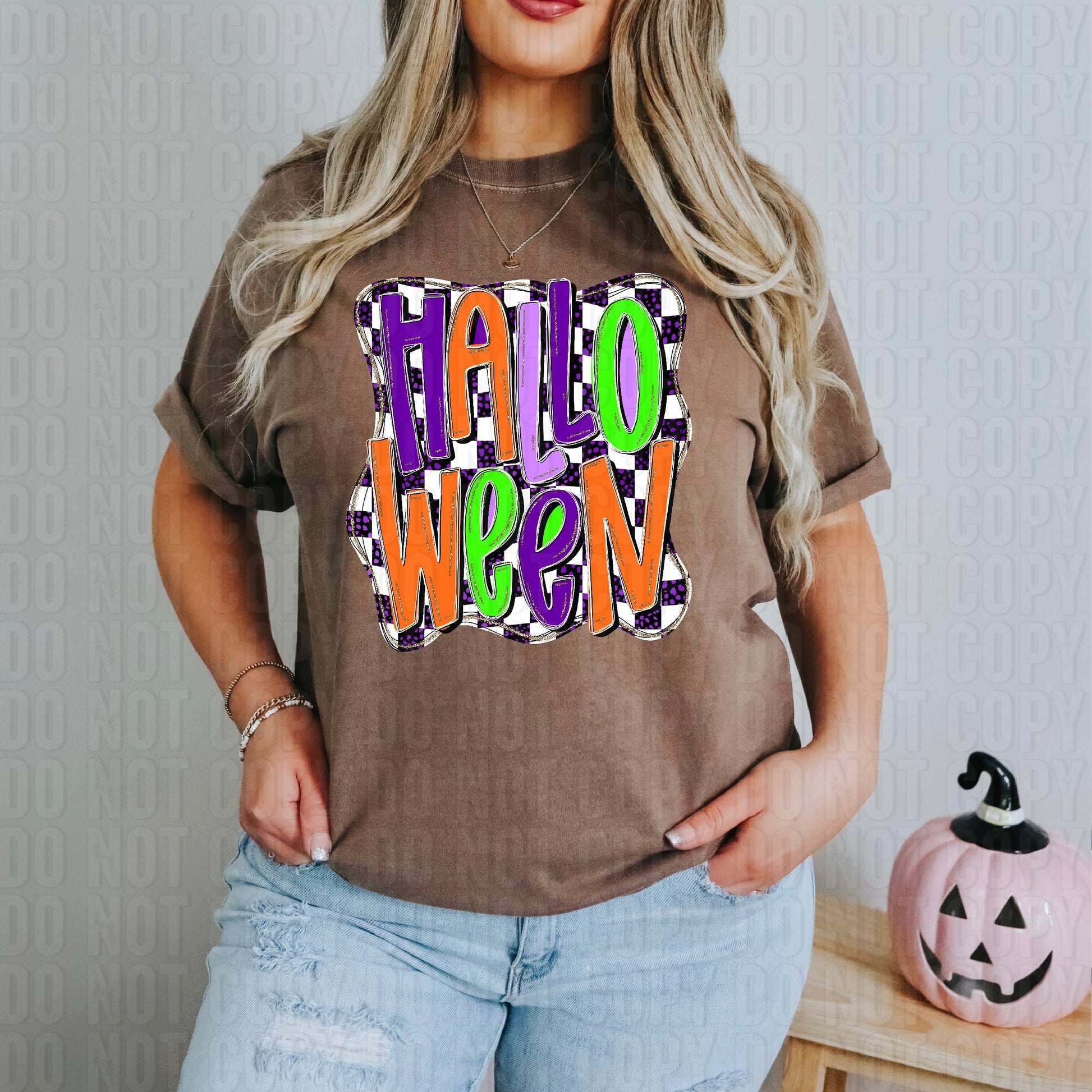 Halloween Neon Checker Outline DTF Transfer