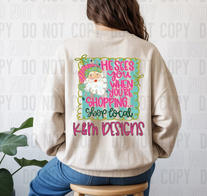 He Sees You When Your Shopping Custom Name DTF Transfer
