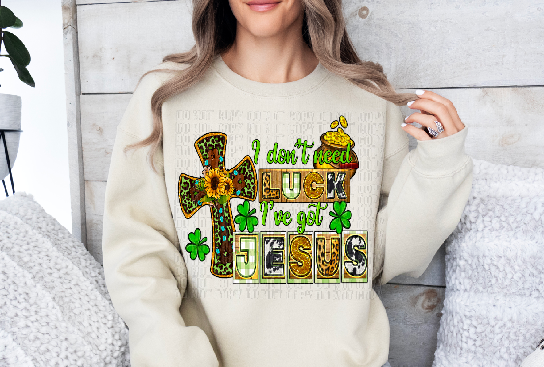 I Don't Need Luck I've Got Jesus With Cross DTF Transfer