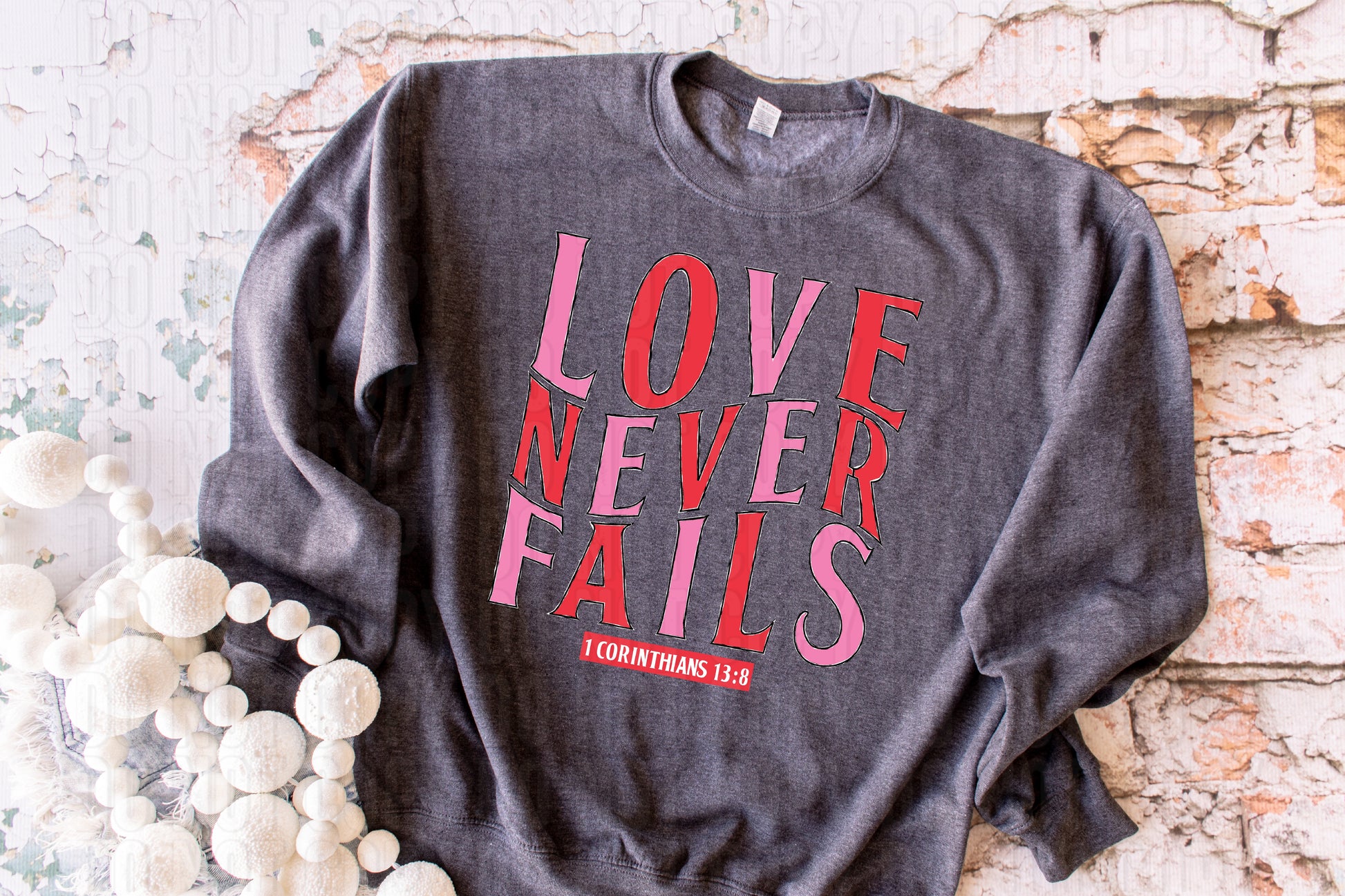 Love Never Fails Pink Red DTF Transfer