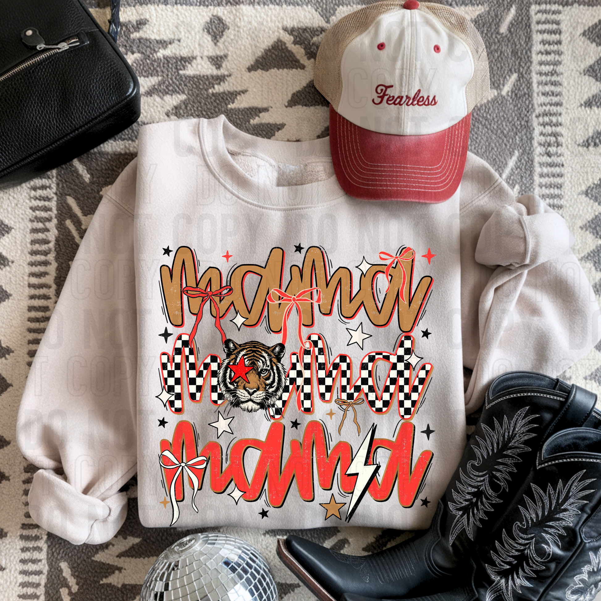 Mama Stacked Tiger With Bows DTF Transfer
