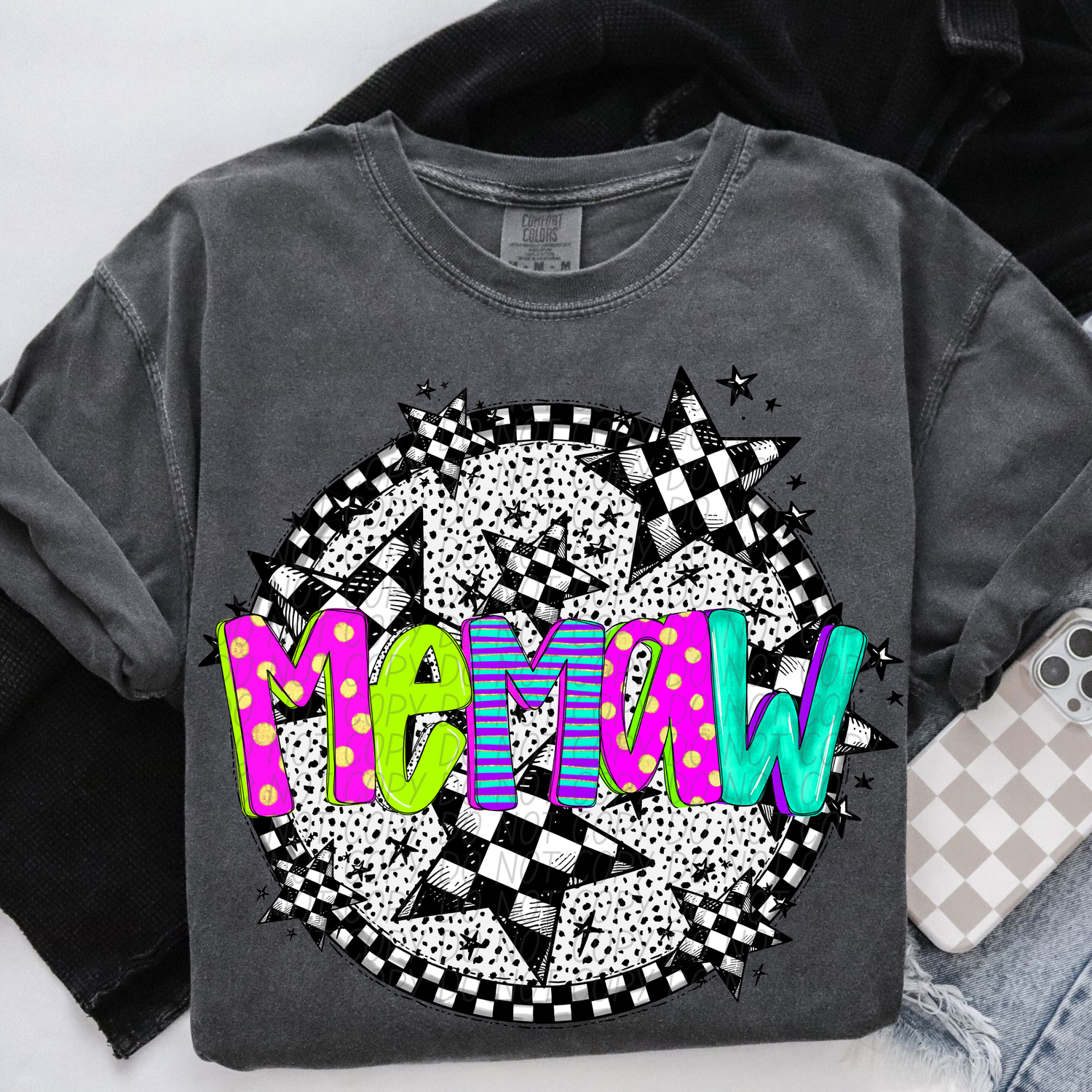 Memaw Neon Checker DTF Transfer