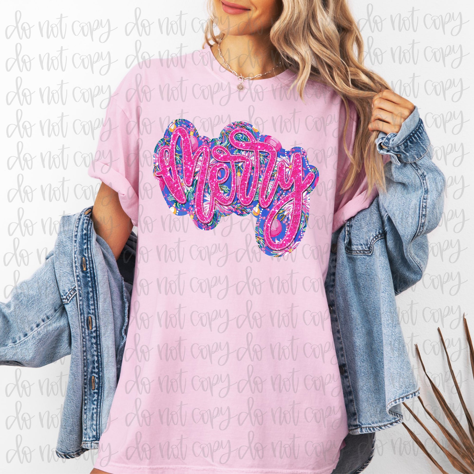 Merry Pink & Blue Applique Faux DTF Transfer