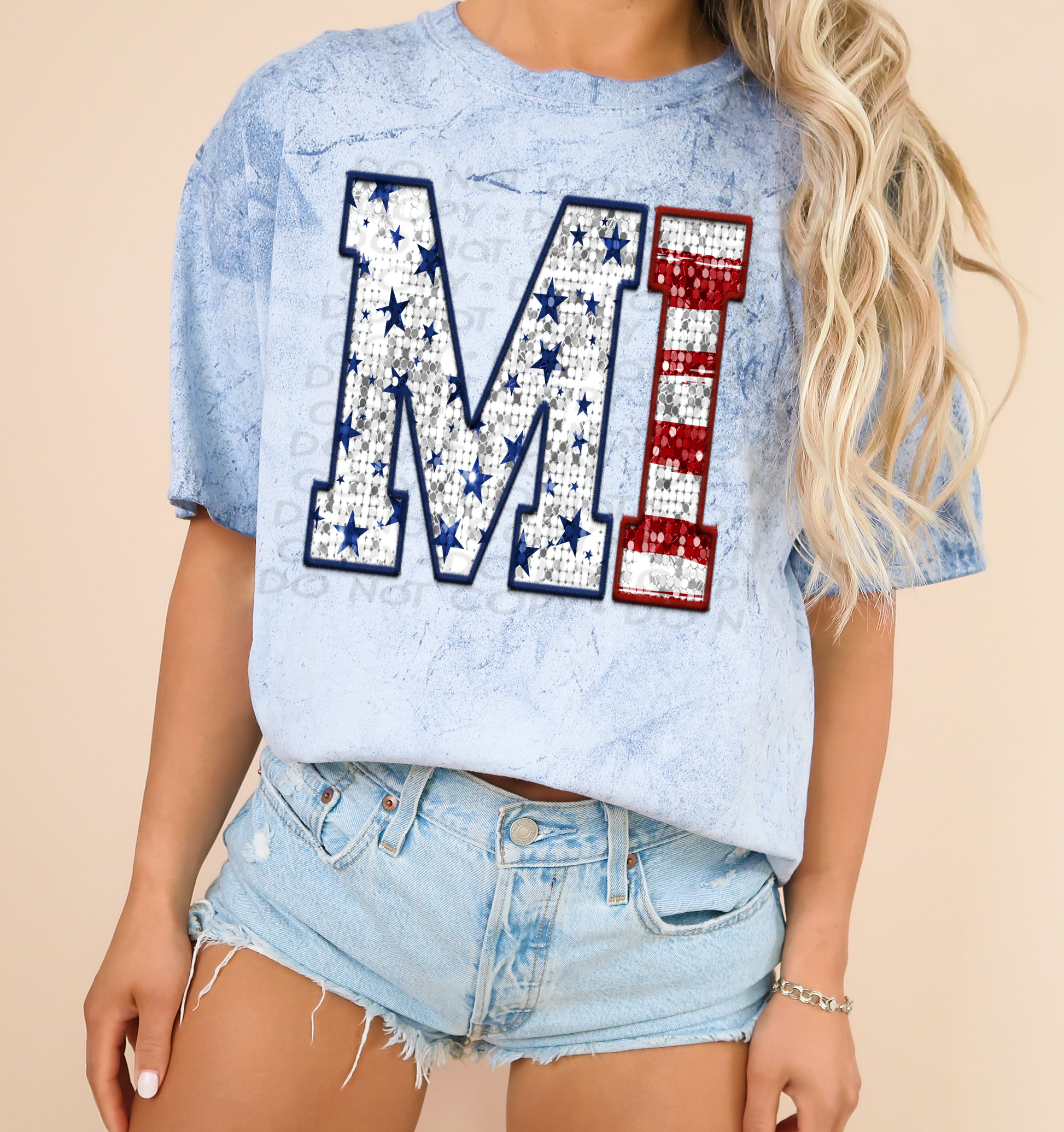 MI Patriotic Sequined Faux State DTF Transfer