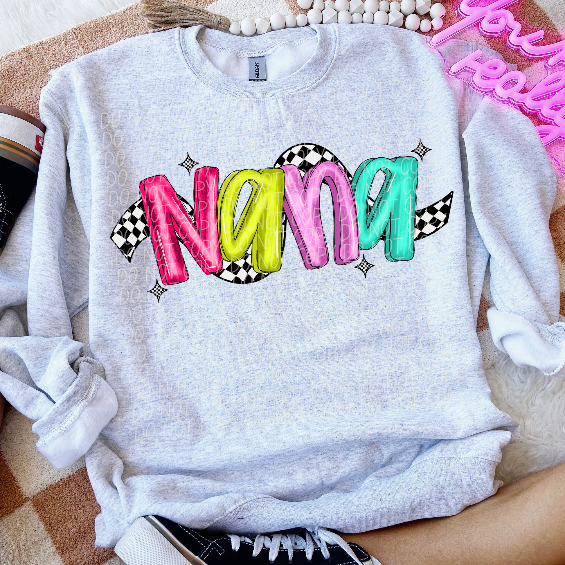 Nana Bright Checker DTF Transfer