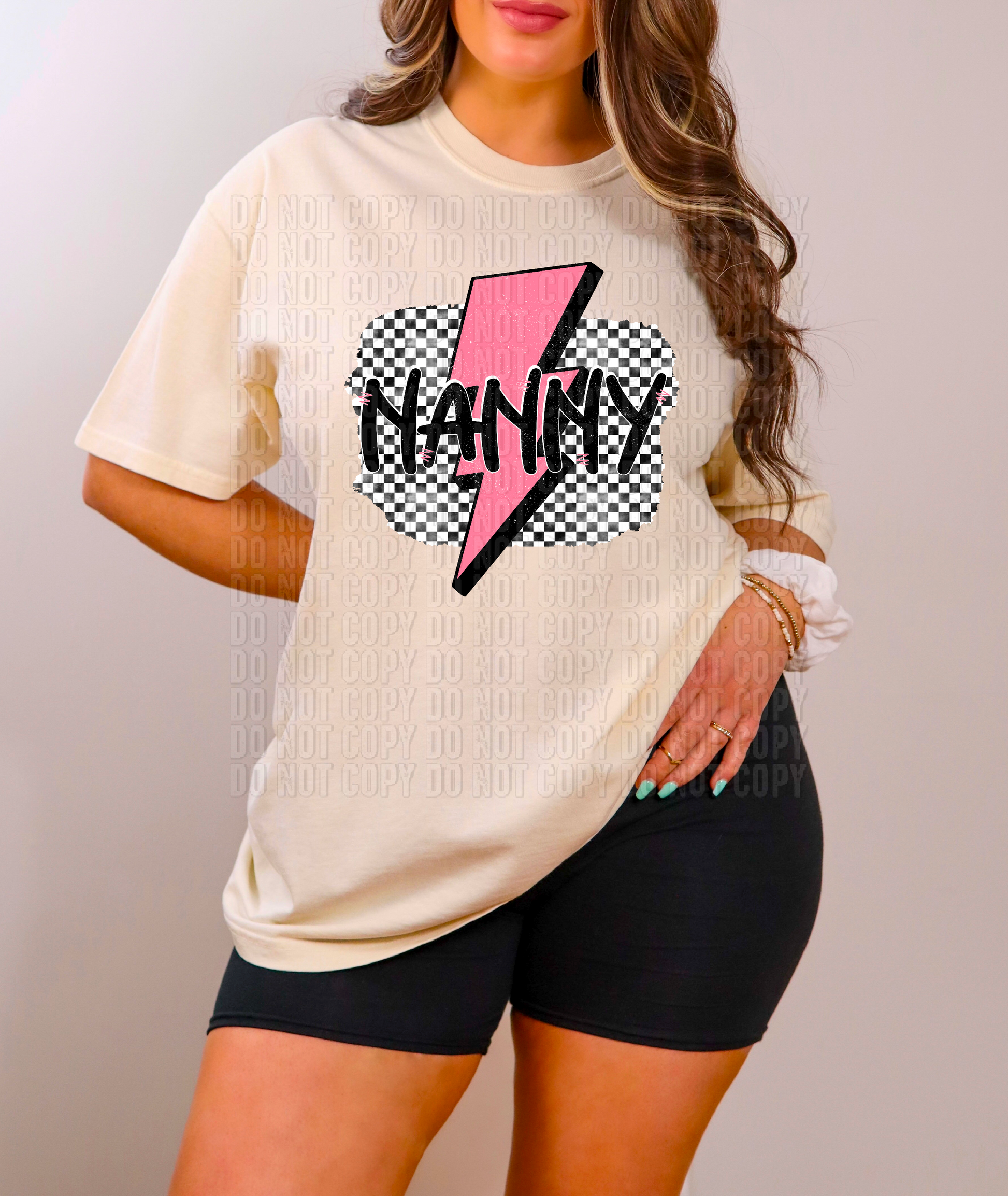 Nanny Pink Lightning Bolt Checkered DTF Transfer