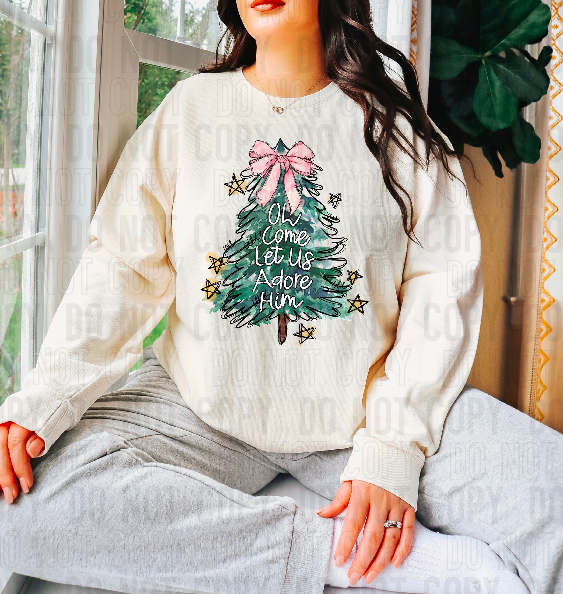 Oh Come Let Us Adore Him Coquette Tree DTF Transfer
