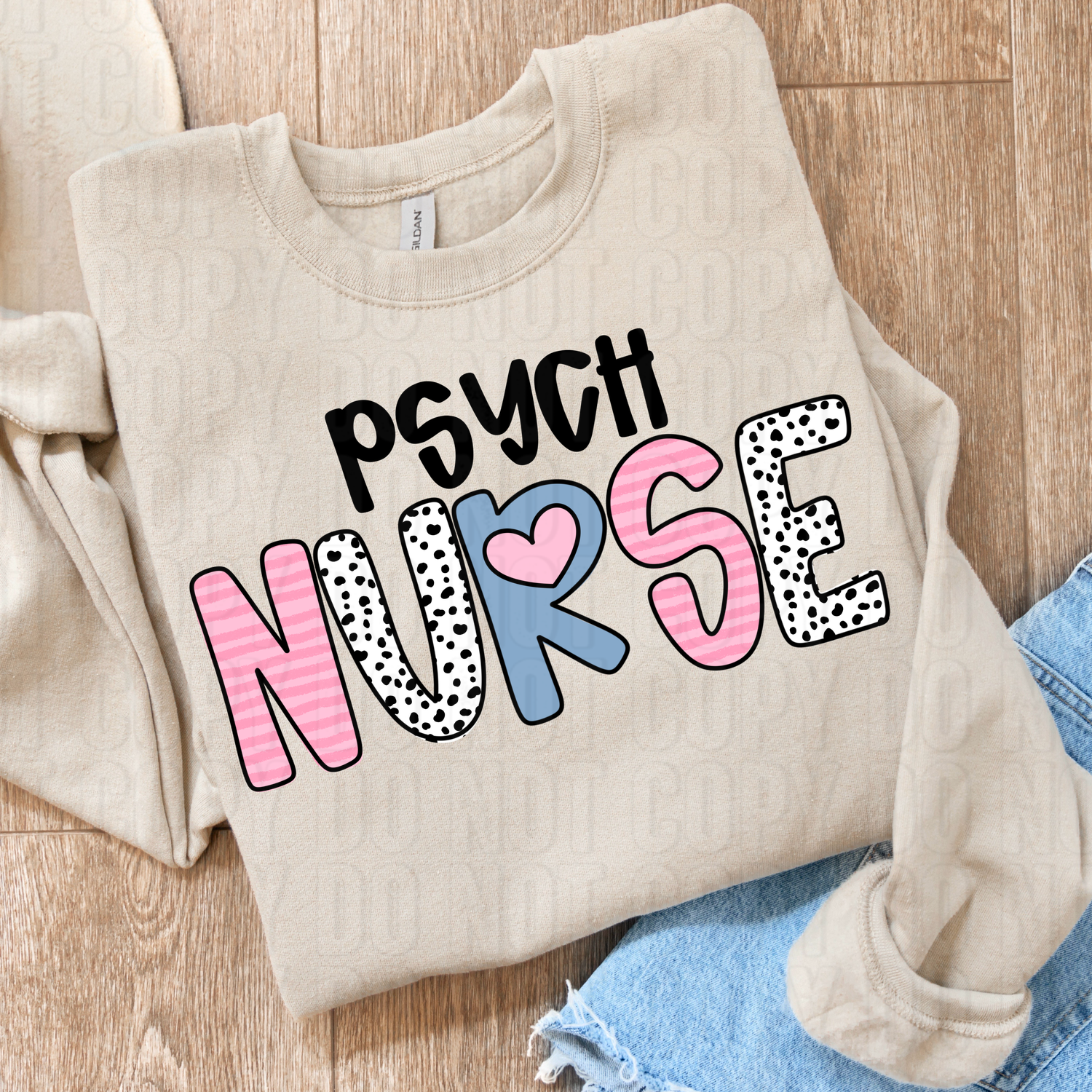 Psych Nurse Hearts DTF Transfer