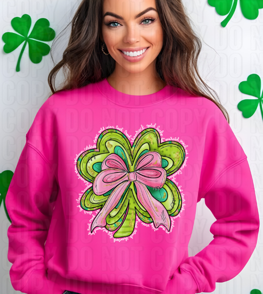 Shamrock W/ Pink Bow White Words DTF Transfer