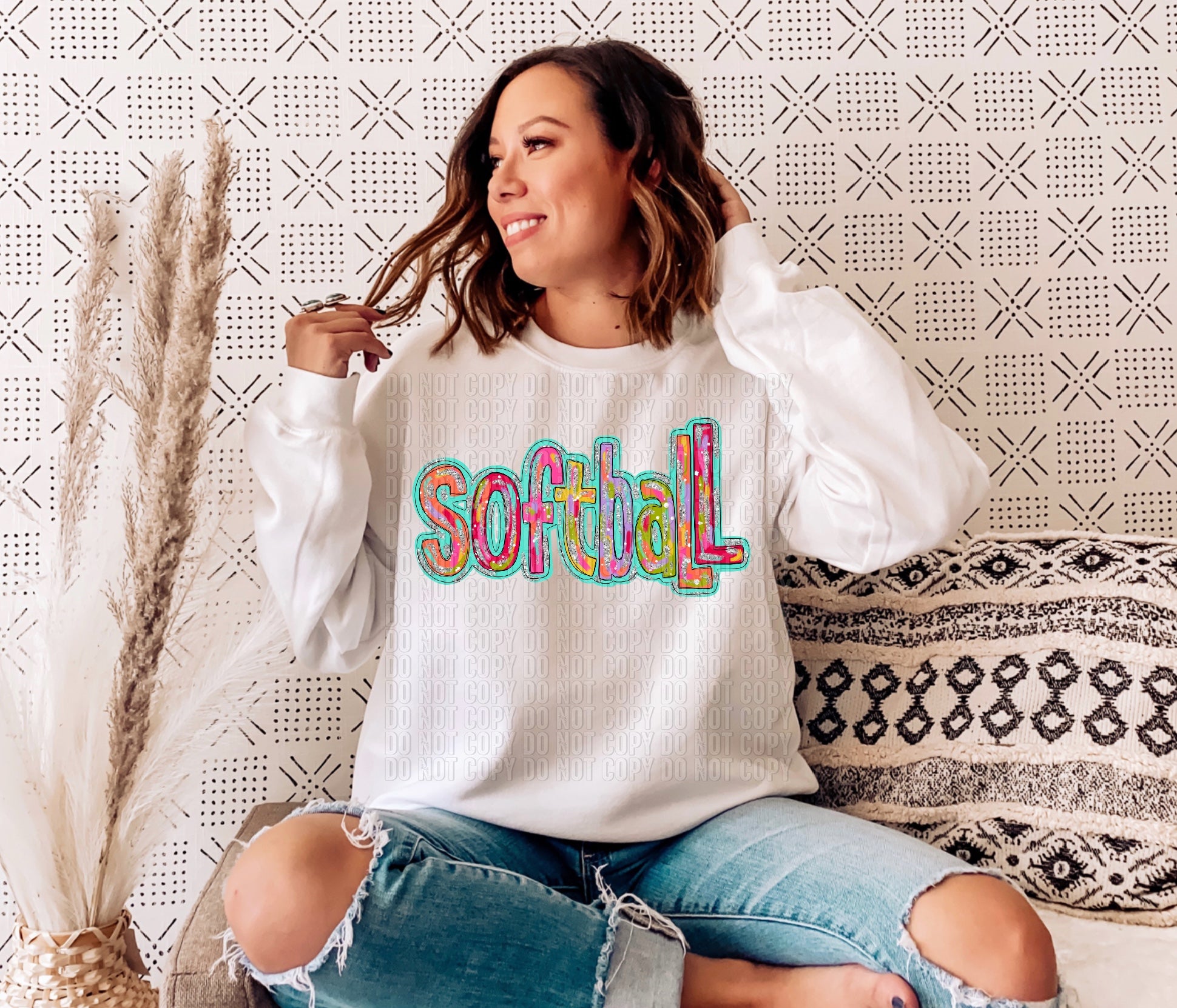Silver Glitz Softball DTF Transfer