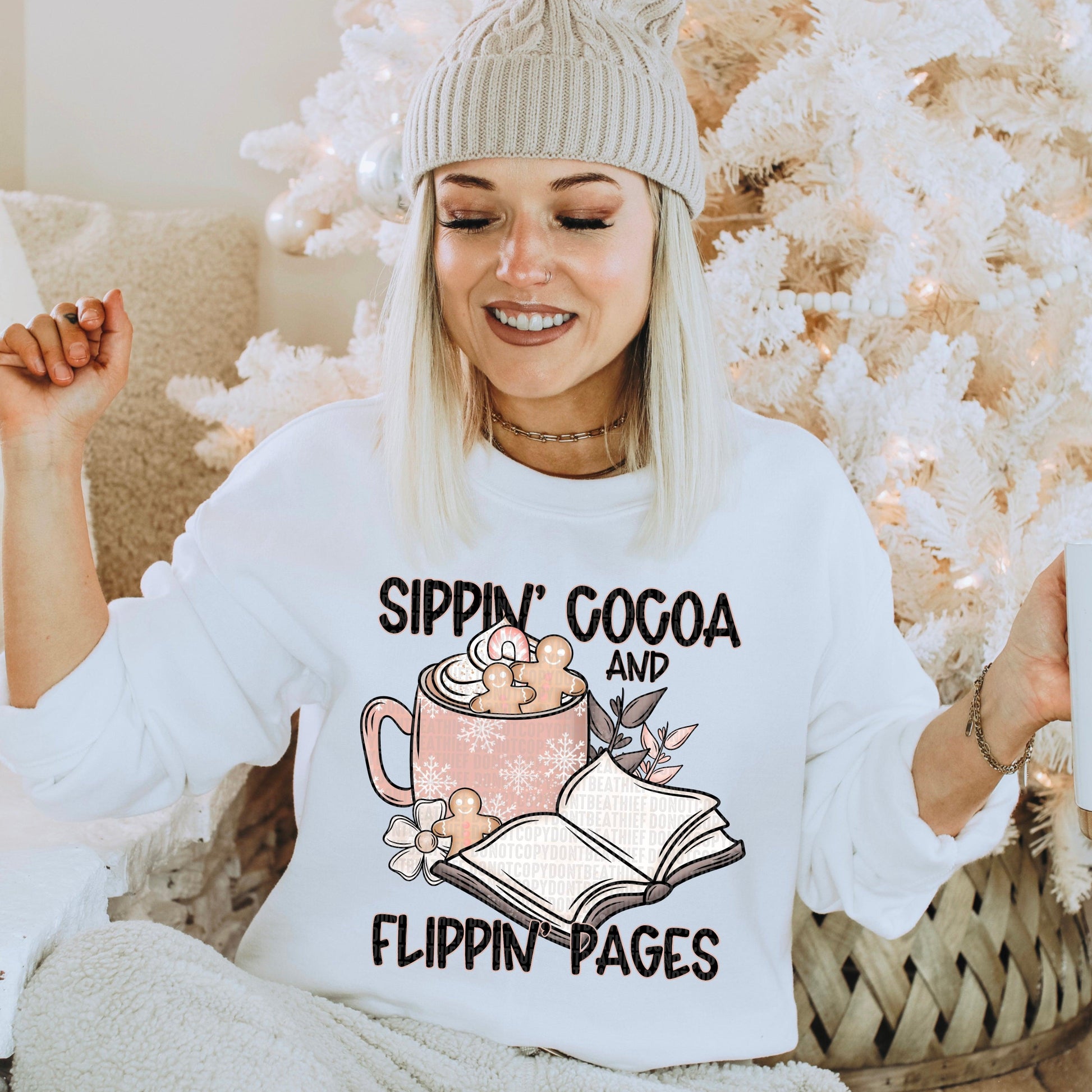 Sippin' Cocoa And Flippin' Pages DTF Transfer