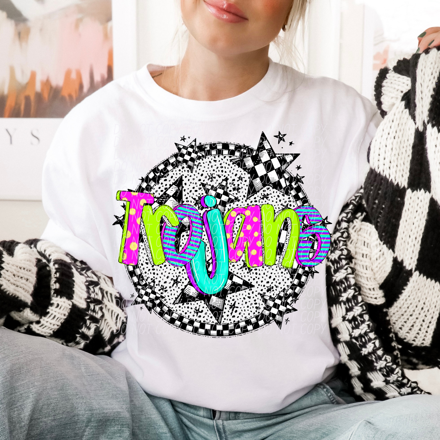 This listing is for a DTF transfer. Instructions: Place transfer on garment, press at 305 degrees for 10 seconds covering with a Teflon sheet or parchment paper using a commercial heat press. Uncover and let transfer cool. Peel transfer off garment, press again for 10 seconds for a matte finish.