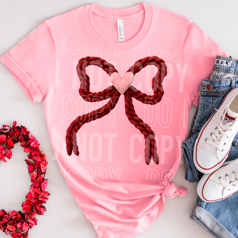 Valentine's Bow Yarn Faux DTF Transfer