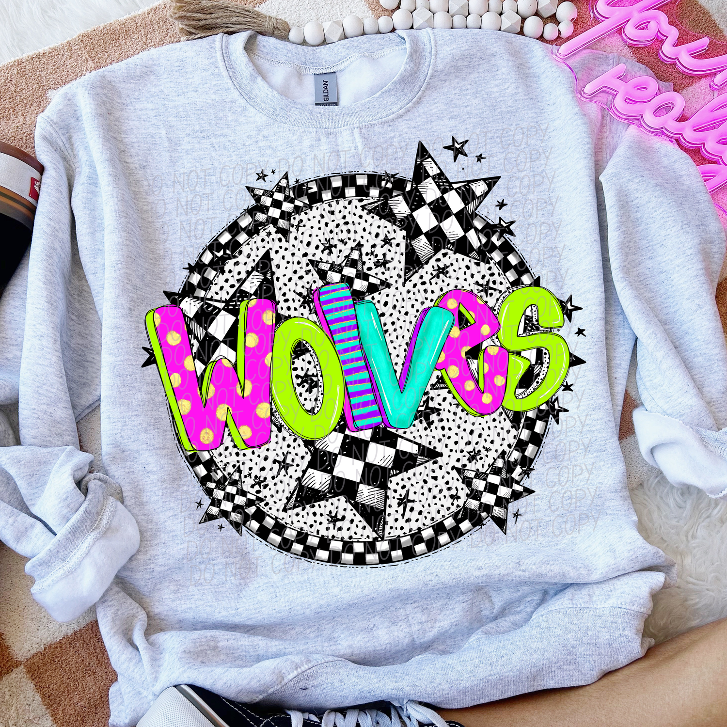 Wolves Mascot Neon Checker DTF Transfer